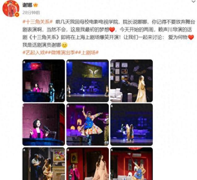 今年6月,谢娜晒出一组舞台剧的照片,标题是“这是我最初的梦想”。她参演了赖声川导演的《十三角关系》,扮演一个为了挽回丈夫向小三求助的主妇。舞台上的她,完全不像综艺里那个“哈哈大笑”的谢娜。她演得细腻又真实,观众看得直呼过瘾。剧场里掌声不断,大家才发现,这个“综艺咖”原来还有这么深的表演功底。
